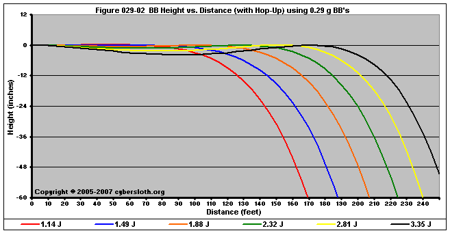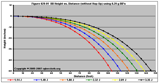 Note that the charts display muzzle energy rather than muzzle velocity. This was done for the sake of consistency. For this section, the muzzle energy can be compared to the equivalent muzzle velocity if 0.20g BB's are used, as well as the actual muzzle velocities for the given BB weight.