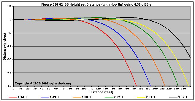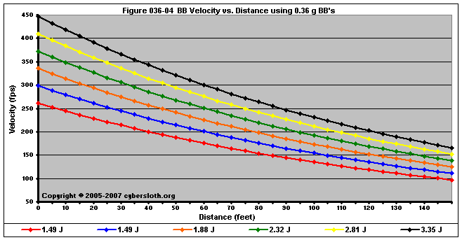 Note that the charts display muzzle energy rather than muzzle velocity. This was done for the sake of consistency. For this section, the muzzle energy can be compared to the equivalent muzzle velocity if 0.20g BB's are used, as well as the actual muzzle velocities for the given BB weight.