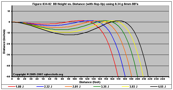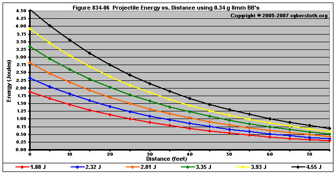 Note that the charts characterize muzzle energy rather than muzzle velocity. This was done for the sake of consistency. For this section, the muzzle energy can be compared to the equivalent muzzle velocity if 0.20g BB's are used, as well as the actual muzzle velocities for the given BB weight.