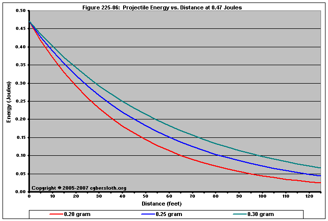 | 0.47 J | 225 fps | 201 | 184 | 173 | 168 | 153 | 150 | 107 |
