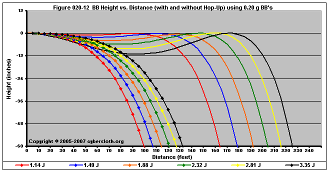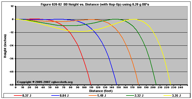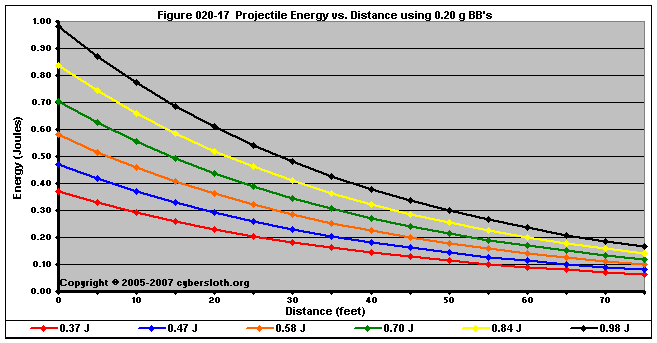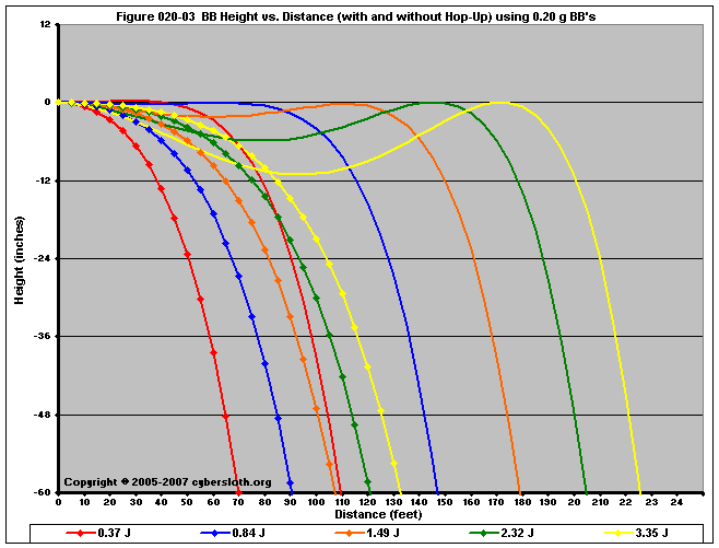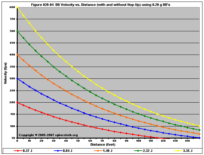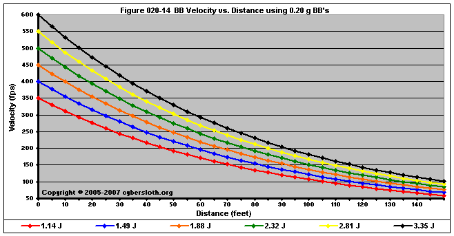 Note that the charts display muzzle energy rather than muzzle velocity. This was done for the sake of consistency. For this section, the muzzle energy can be compared to the equivalent muzzle velocity if 0.20g BB's are used, as well as the actual muzzle velocities for the given BB weight.