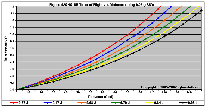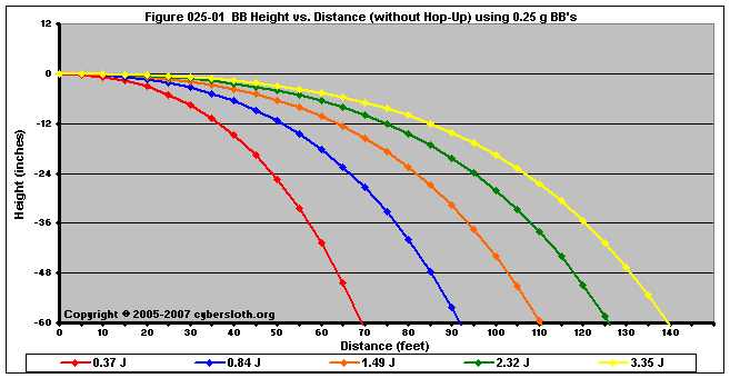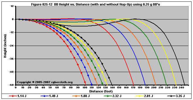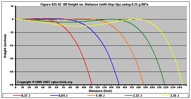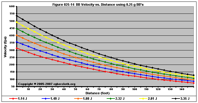 Note that the charts display muzzle energy rather than muzzle velocity. This was done for the sake of consistency. For this section, the muzzle energy can be compared to the equivalent muzzle velocity if 0.20g BB's are used, as well as the actual muzzle velocities for the given BB weight.
