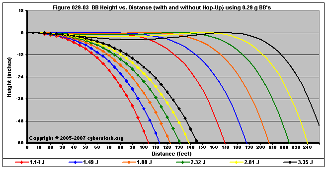 Note that the charts display muzzle energy rather than muzzle velocity. This was done for the sake of consistency. For this section, the muzzle energy can be compared to the equivalent muzzle velocity if 0.20g BB's are used, as well as the actual muzzle velocities for the given BB weight.