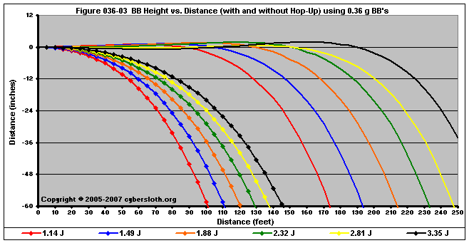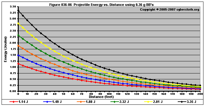 Note that the charts display muzzle energy rather than muzzle velocity. This was done for the sake of consistency. For this section, the muzzle energy can be compared to the equivalent muzzle velocity if 0.20g BB's are used, as well as the actual muzzle velocities for the given BB weight.
