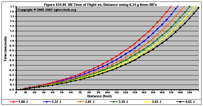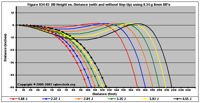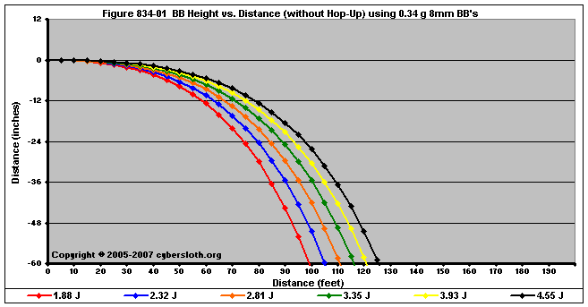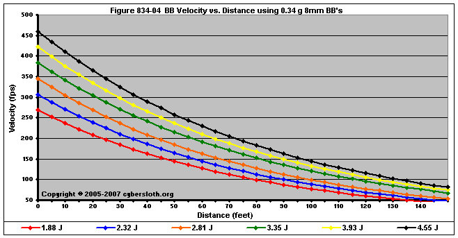 Note that the charts characterize muzzle energy rather than muzzle velocity. This was done for the sake of consistency. For this section, the muzzle energy can be compared to the equivalent muzzle velocity if 0.20g BB's are used, as well as the actual muzzle velocities for the given BB weight.