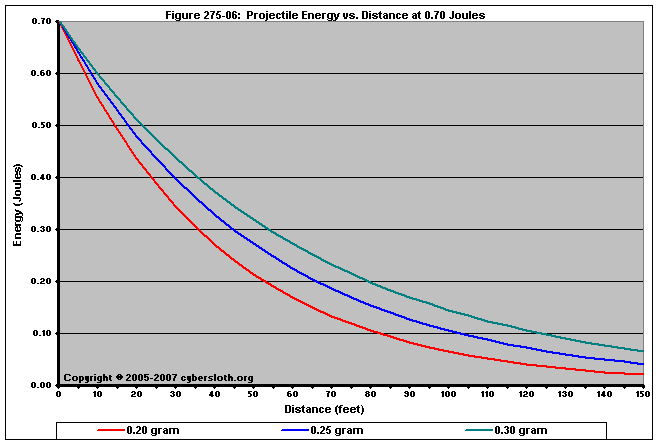 | 0.70 J | 275 fps | 246 | 225 | 211 | 205 | 188 | 183 | 131 |
